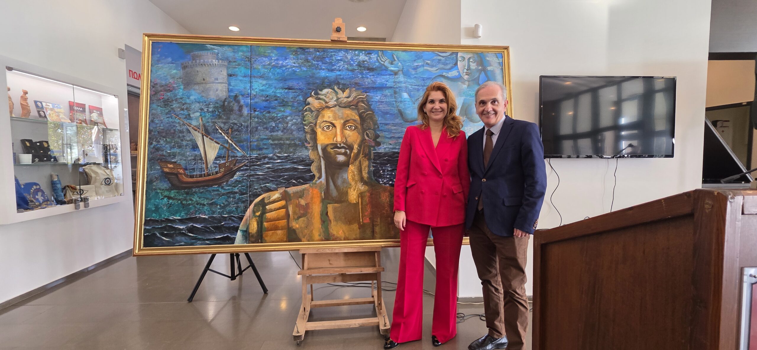 … Μέσα από τις εμπνευσμένες πινελιές του, ο Μάκης Βαρλάμης αποτυπώνει όχι μόνο το ηρωικό μεγαλείο του Μεγάλου Αλεξάνδρου, αλλά και τα διαχρονικά ιδανικά της δημιουργικότητας, της ηγεσίας και της πολιτιστικής ενότητας που συνεχίζουν να αντηχούν μέχρι σήμερα. Η τέχνη του μας προσκαλεί να αναλογιστούμε ένα παρελθόν που μας ενώνει και να οραματιστούμε ένα μέλλον όπου η συνεργασία μεταξύ Ελλάδας και Αιγύπτου θα γίνεται όλο και ισχυρότερη…