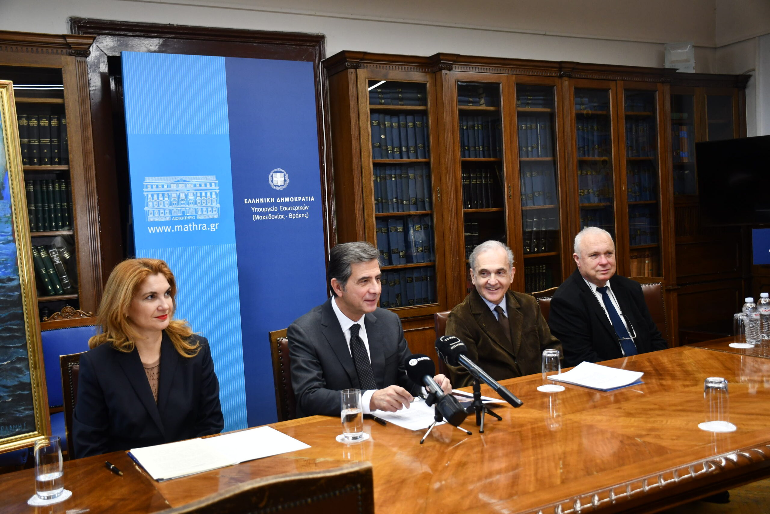 From the interview at the Ministry of Foreign Affairs, from left, Mrs. Tsapikidou, representative of the Ministry of Foreign Affairs, the Deputy Minister, Mr. Gioulekas and the members of the Vergina Experimental Laboratory, Pavlos Trochopoulos and Asterios Nenos.